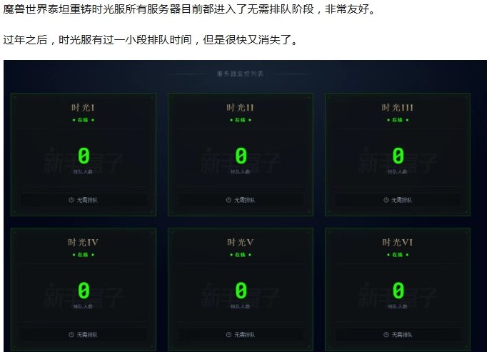 魔兽时光服:所有服务器进入无排队状态