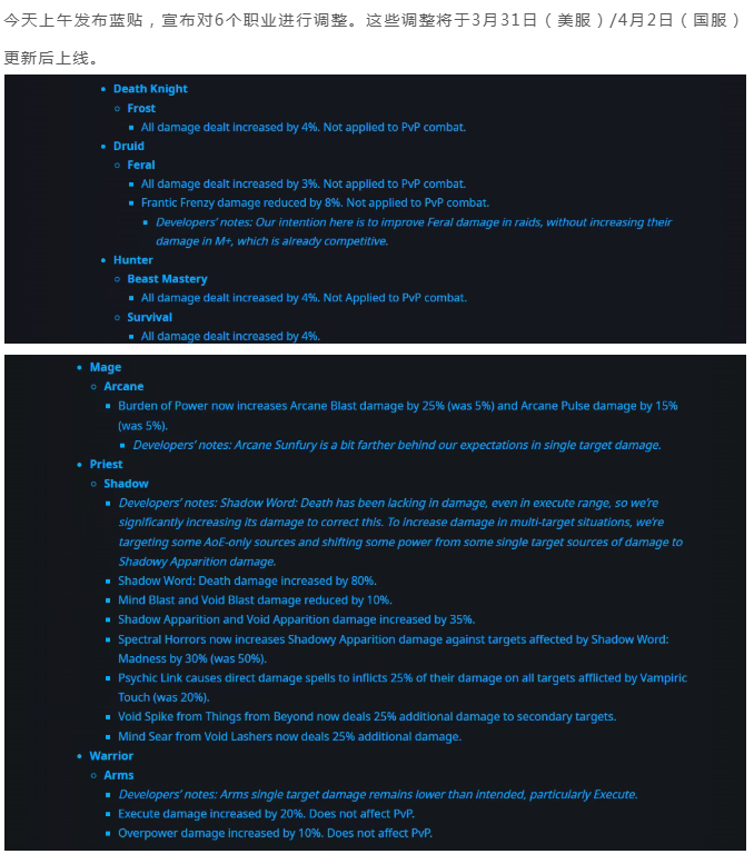 魔兽世界:将于4月2日到来的职业调整,6个职业7个专精有调整
