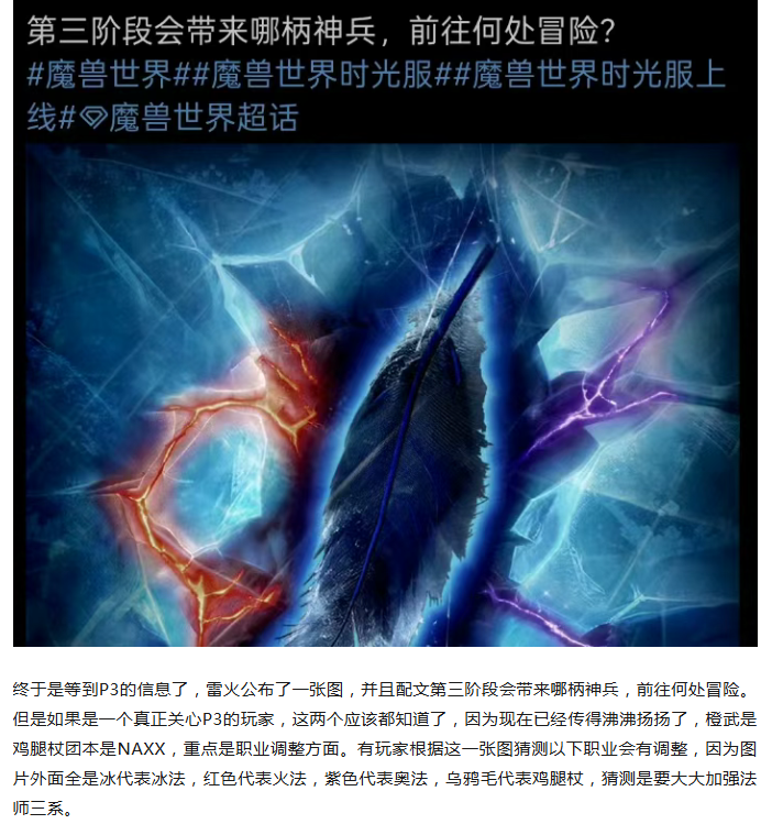 魔兽世界:雷火放出时光服P3重磅信息,这3个职业或将得到史诗级加强