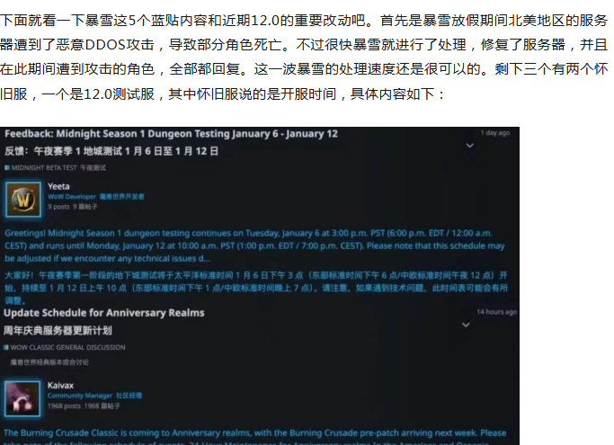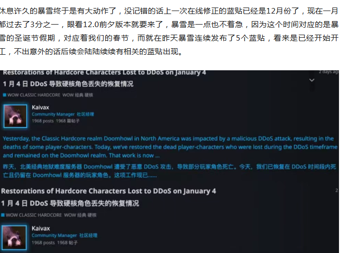 魔兽世界:暴雪连夜紧急发布5个蓝贴,服务器遭到恶意攻击