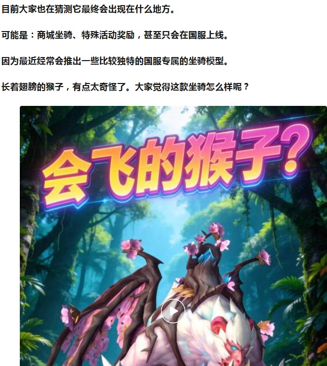 长翅膀的猴子!魔兽新飞行树猴坐骑,两种配色曝光!