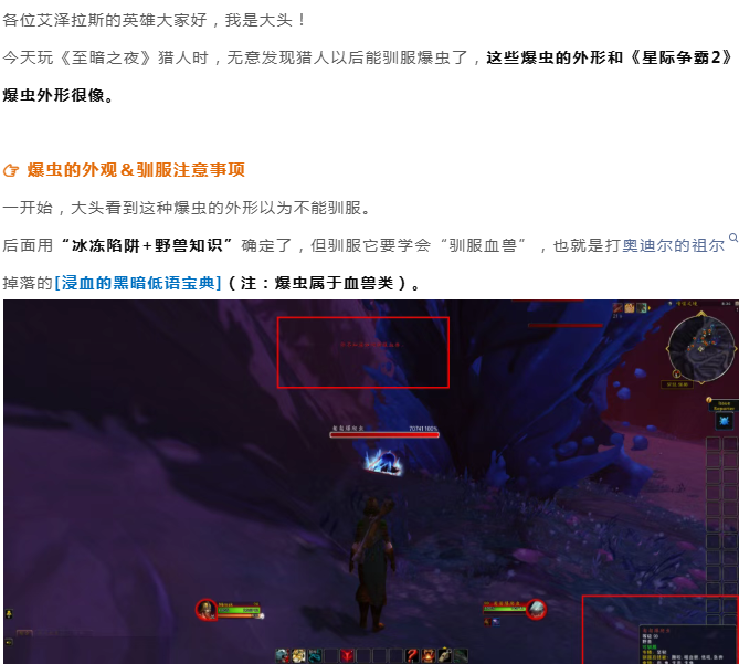 魔兽世界:好消息,猎人在至暗之夜中能驯服星际争霸2类似外观爆虫