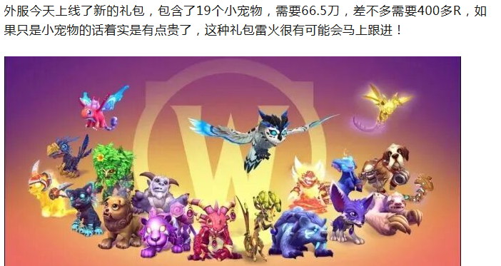 【魔兽世界】正式服外服上线小宠物礼包19个需要66.5刀