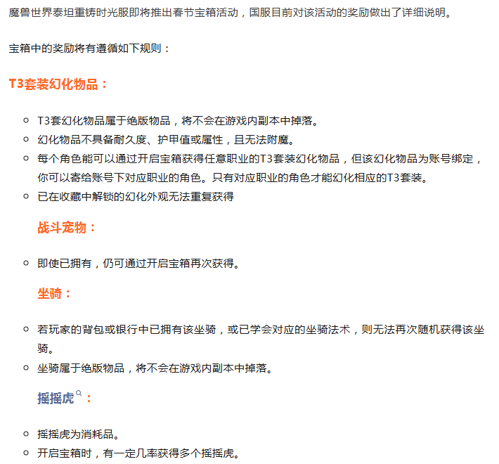 魔兽时光服:春节宝箱奖励详细说明