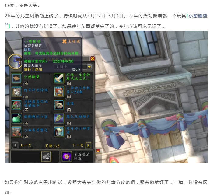 魔兽世界:26年儿童周活动开启,今年只加一个玩具,其他和去年一样