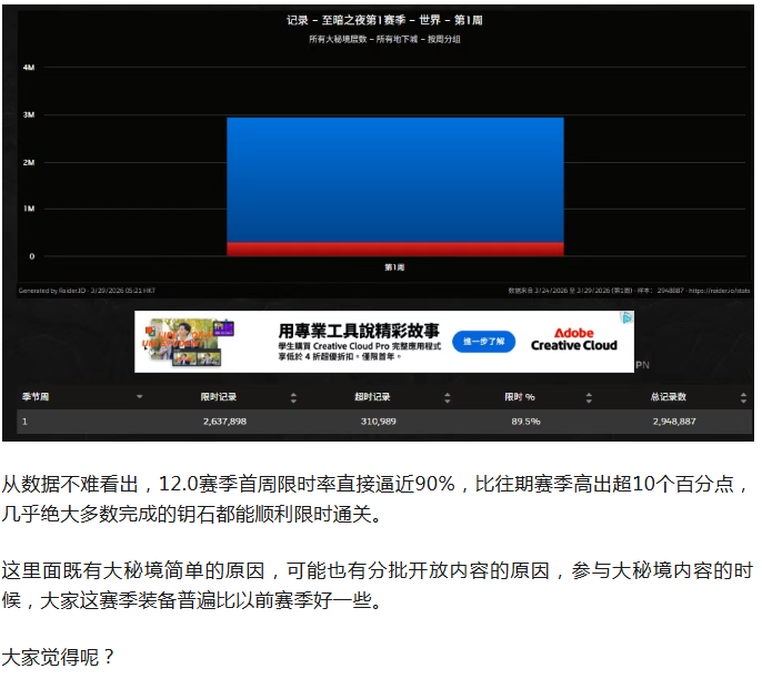 魔兽:12.0大秘境过于简单?首周限时率竟然高达90%!
