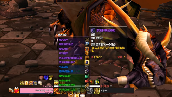 前往黑翼之巢尾王奈法利安处,拾取“奈法利安的徽记”。