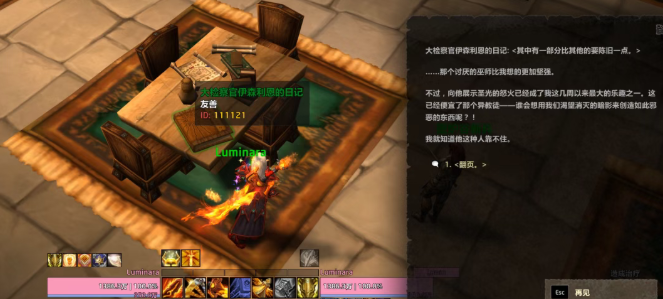 坐标(43,18),调查桌上的日记。