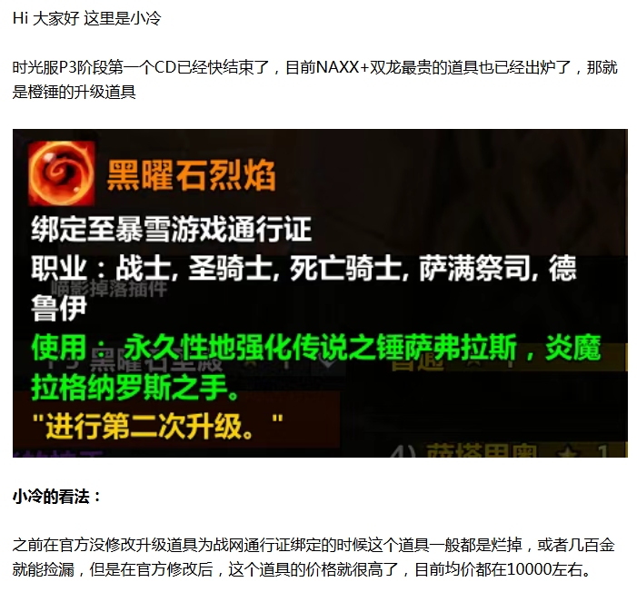 【魔兽世界】时光服P3副本最贵物品出炉,均价超10000金!只因官方这则改动