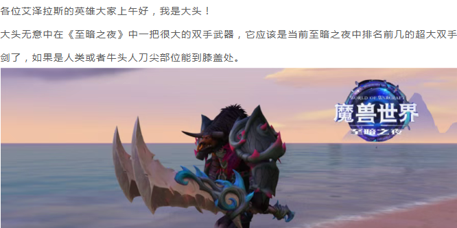 魔兽世界:至暗之夜超大号双手剑外观预览,刀尖部位能到膝盖处!