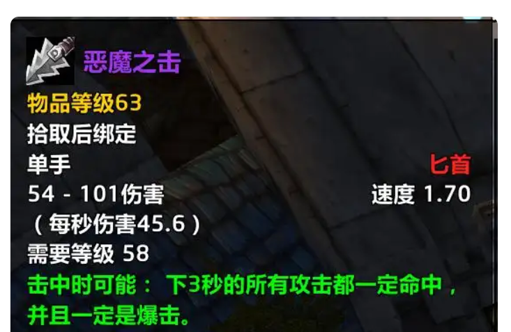 更令人震惊的是,这位盗贼的装备并非全T6毕业,真正让他实现“输出飞跃”的,是静静躺在他背包里的一把散发着暗紫色光芒的匕首——“埃辛诺斯战刃·副手”。