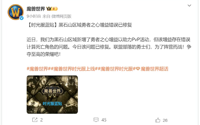 魔兽时光服:国服公告修复了一个BUG