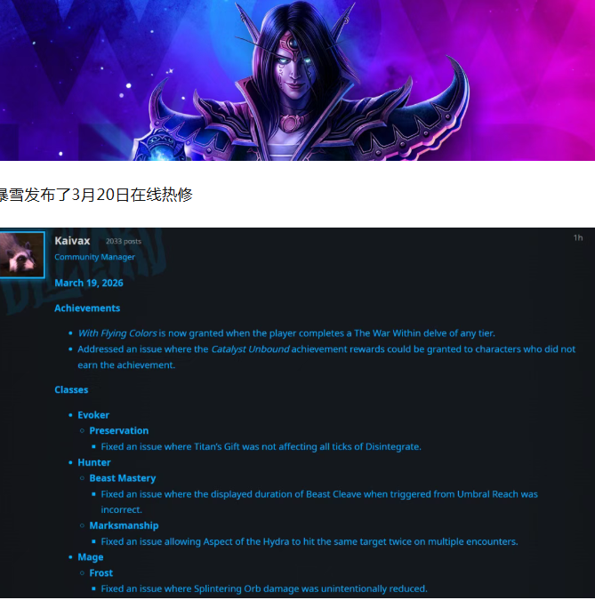 魔兽世界:3月20日在线热修!