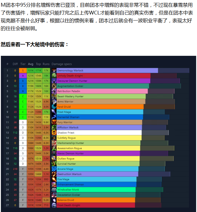 【魔兽世界】12.0 最新全职业伤害排行!增辉登顶DPS排行第一