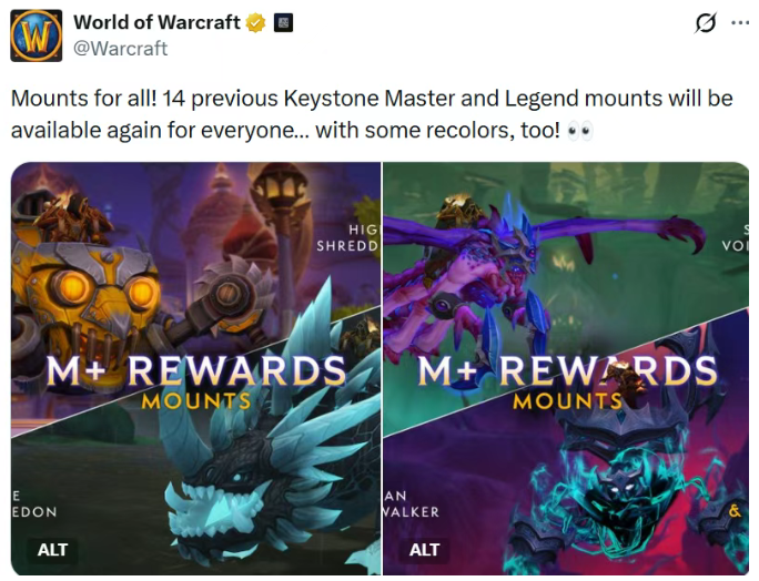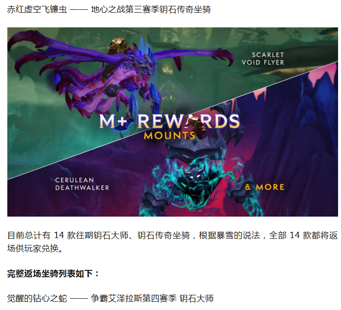 魔兽:官宣!本周3400分玩家可兑换两个新坐骑及14款绝版返场坐骑!