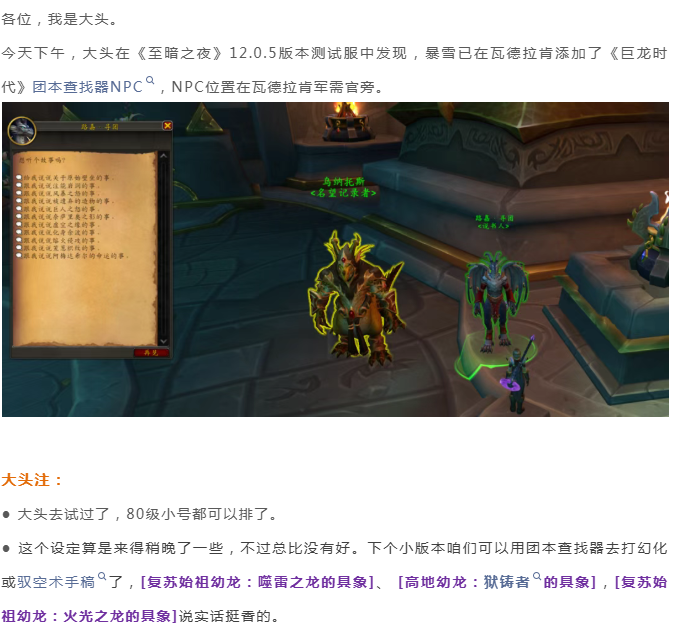 魔兽世界:大头发现,《巨龙时代》团本查找器NPC已在12.0.5版本加入游戏