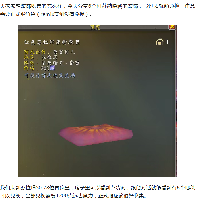 魔兽世界阿苏纳隐藏装饰飞过去就能兑换需要1200点远古魔力