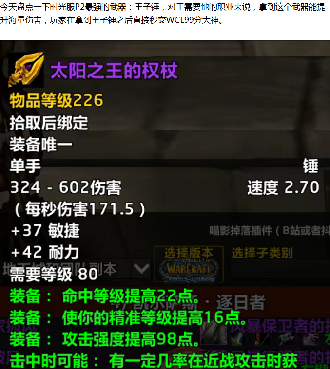 【魔兽世界】时光服P2最强武器!玩家拿到后直接秒变WCL99分大神
