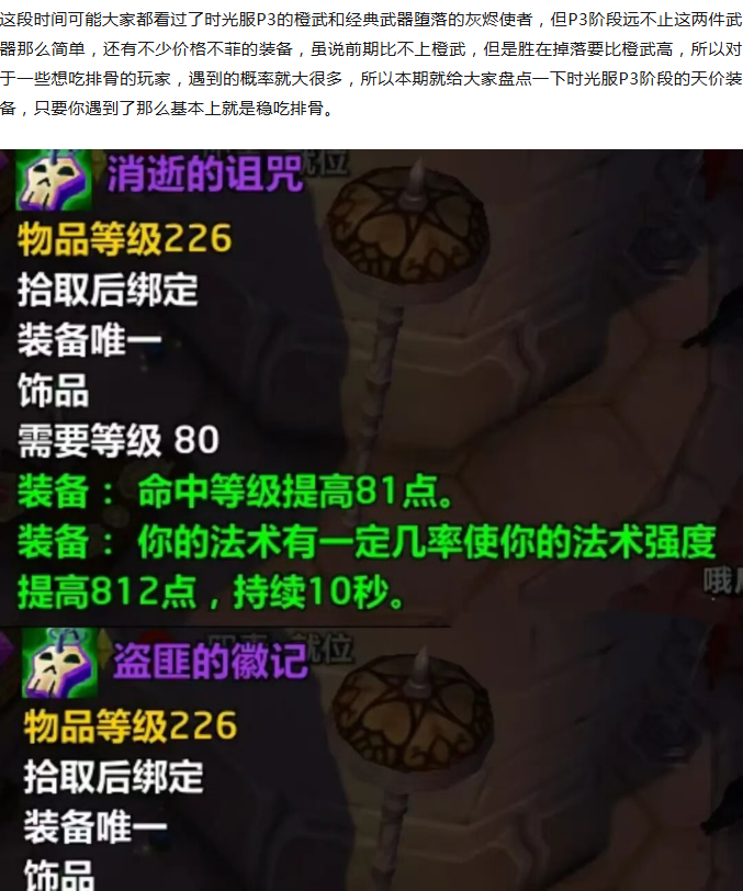 魔兽世界:时光服P3首批天价装备曝光,遇到一个“排骨”吃到撑