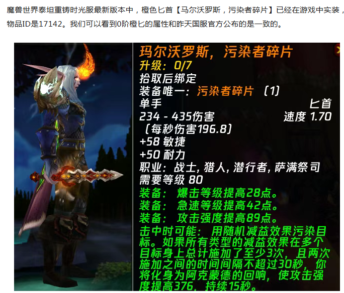 魔兽时光服:橙色匕首已在游戏中实装
