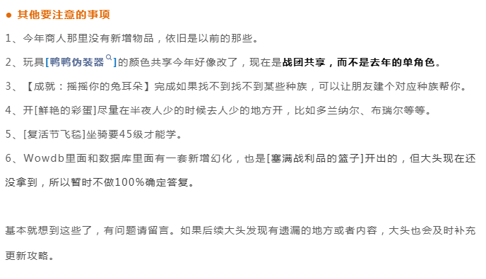 魔兽世界:2026年复活节活动细节、注意事项,今年大部分内容和往年一样