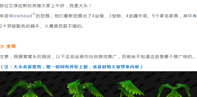 魔兽世界:窝窝头最新挖掘,有4坐骑、3宠物、13件其他物品,邪能坐骑不错