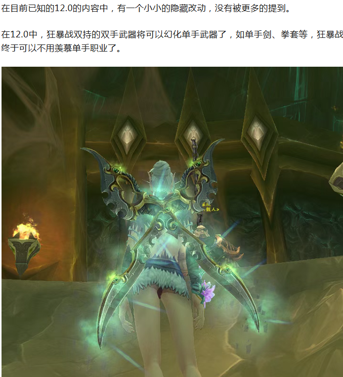 魔兽世界12.0狂暴战将可幻化单手武器匕首也将互通