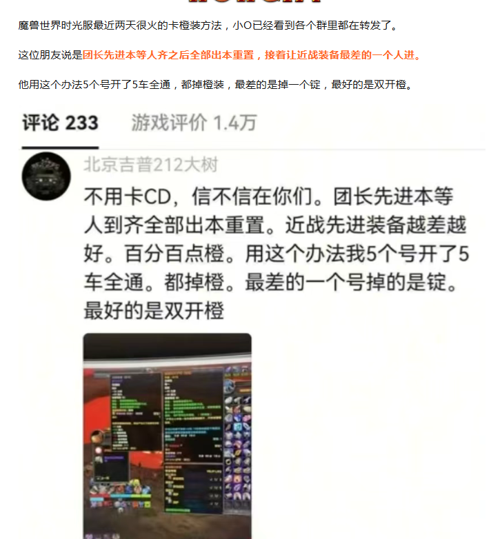 魔兽时光服:玩家分享必出橙装的方法
