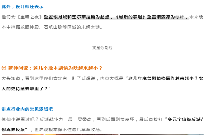 说白了,现在无论是暴雪内部和微软高层,都把魔兽定调成长线运营,太快消耗剧情和重要NPC,根本不符合他们的长期规划。