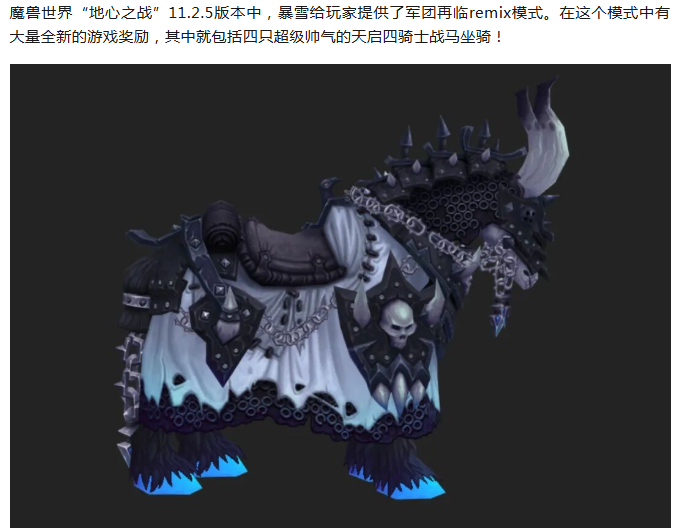 魔兽世界:超级拉风的天启四骑士死亡战马即将开放获取!
