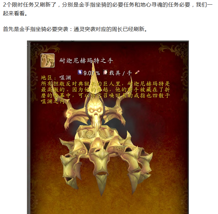 魔兽世界抓紧时间2个限时任务错过等很久不要错过