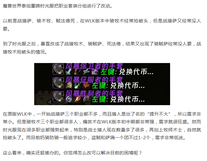 魔兽时光服:玩家建议修改套装分组!有的没人要有的抢破头