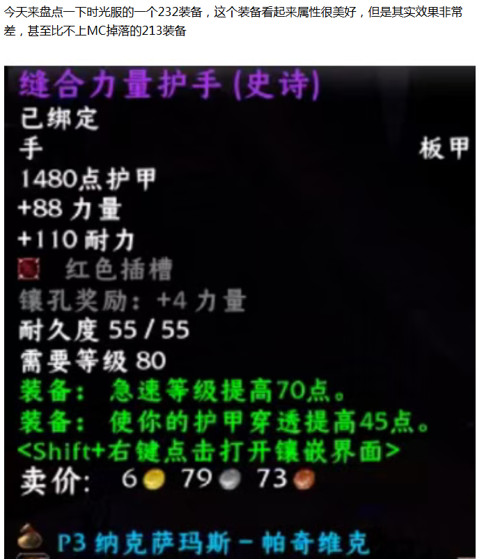 【魔兽世界】时光服最陷阱的232装备!DPS模拟不如MC掉落213装备,千万别买