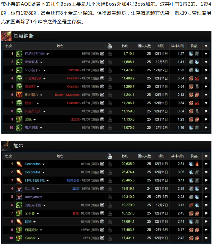 首先我们来看看全部百分比的排名,猎人和术士等职业依靠部分Boss强力的AOE能力目前依旧在榜首遥遥领先。标灰色为样本数量少于5000的职业。