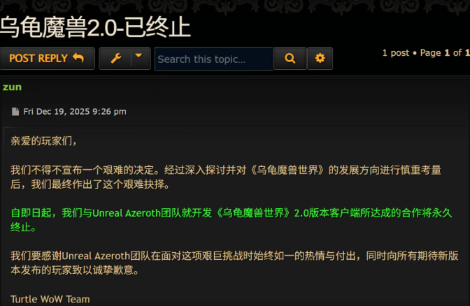 【重磅】魔兽世界乌龟服宣布2.0开发永久终止