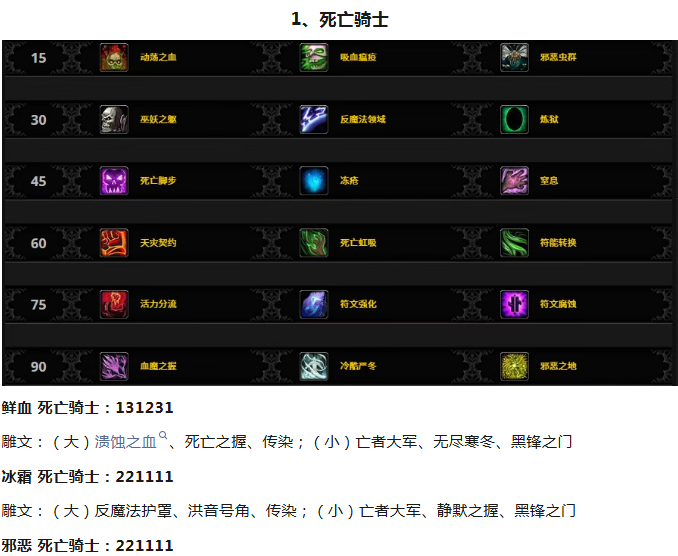 下面给大家分享熊猫人之谜当前版本全职业最佳的天赋点法和雕文使用情况,数据来源于wowhead,并做了整理。