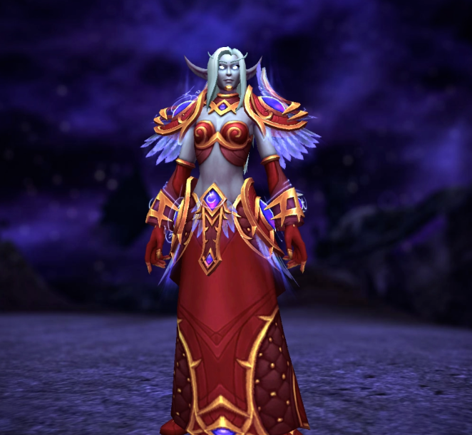 作为“苏拉玛”的主要居民,夜之子在《军团再临》扩展包中作为主要阵营之一登场,之后成为了《争霸艾泽拉斯》中的盟军种族,加入了部落。现在,你可以收集到一个全新的夜之子专属传承护甲染色版本——酒庄红艳夏多雷套装。