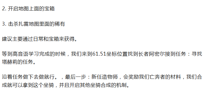 今天分享暗影界扎雷合成坐骑机制的前置任务,完成之后我们后续可以获得很多合成坐骑的图纸并拿到合成坐骑。