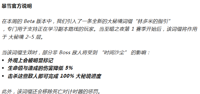 “林多米的指引”是一条专为大秘境新手设计的全新词缀,重点在于帮助玩家熟悉副本路线,尤其是该拉哪些怪、怎么走。