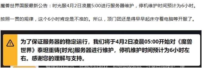 国服最新公告:4月2日时光服维护延长!预计11点开服