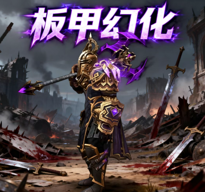 【板甲幻化】一套充满压迫感的黑金板甲幻化,紫色特效是点睛之笔!