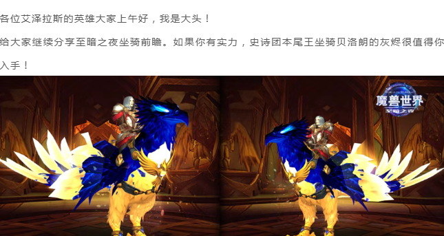 魔兽世界:至暗之夜两个团本坐骑外观预览,实力的可考虑贝洛朗的灰烬