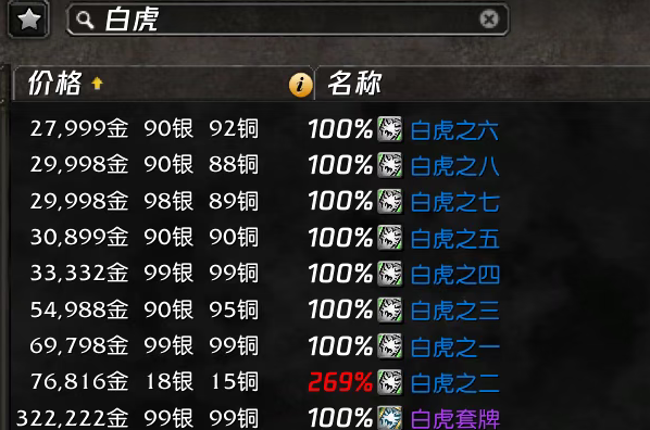 不过物理系的“伟大”卡片【白虎套牌】依旧价格高企,大约还在30万金币左右。