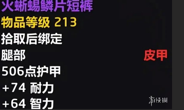 召火腿甲是一件213物品等级的板甲腿部装备,对坦克职业尤其珍贵。