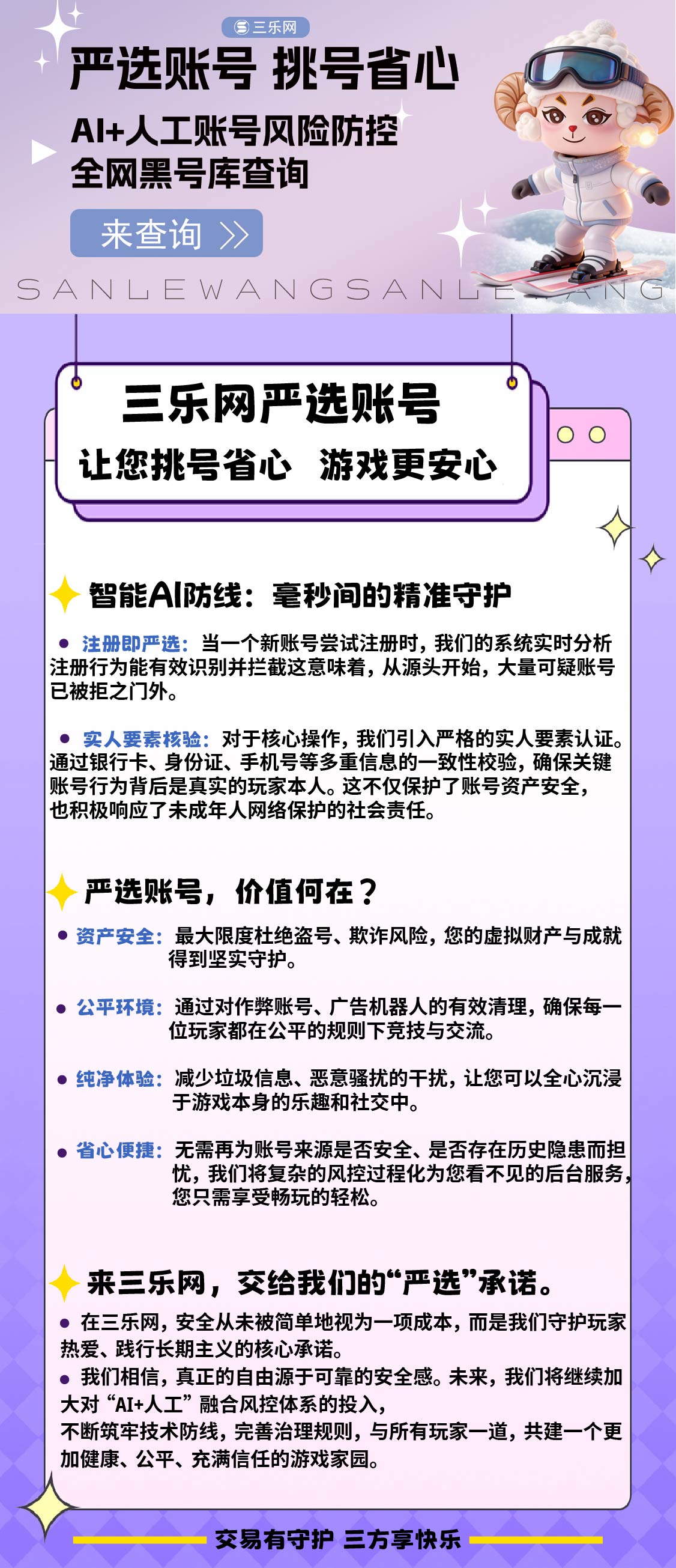 三乐网游戏账号交易平台,严选交易,挑号省心,AI+人工账号风险防控