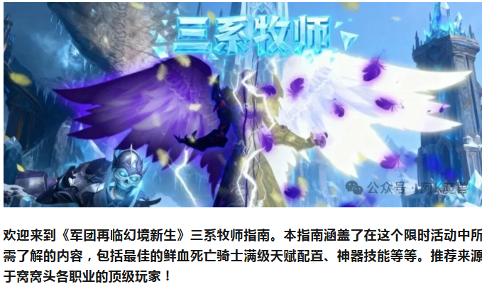 【三系牧师】军团再临幻境新生天赋、属性以及神器技能推荐!