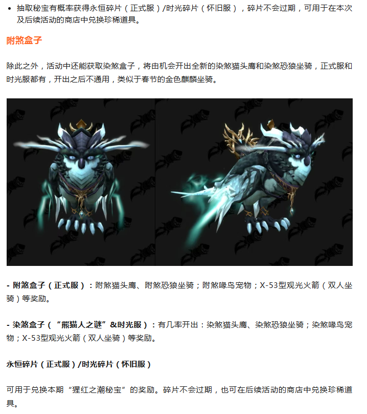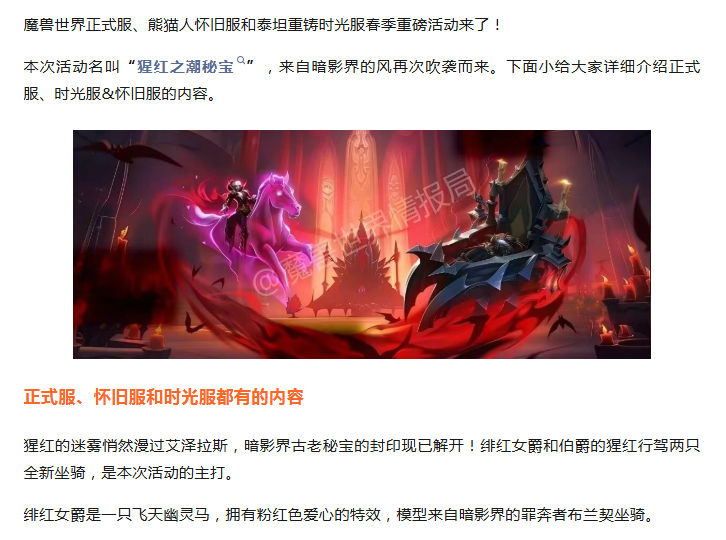 魔兽国服:飞天幽灵马和猩红座驾来袭!时光服冰法血水元素