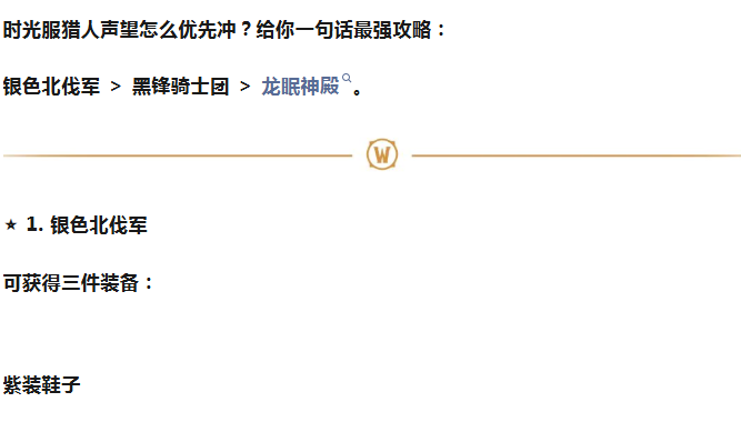 猎人必看!时光服最强声望优先级!