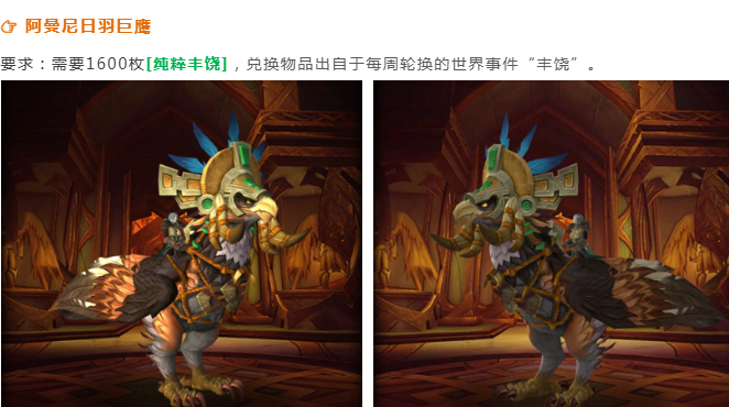 给大家分享《至暗之夜》中两个“丰饶”坐骑[阿曼尼日羽巨鹰]、[神佑阿曼尼掘地者]外观,同时也简要介绍丰饶事件是什么。