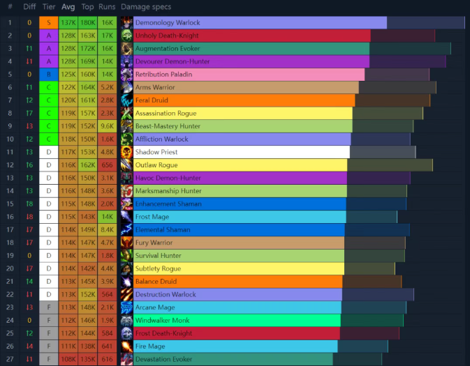 魔兽本周大秘境DPS数据!恶魔术急需削弱!一个专精超强却没人玩!